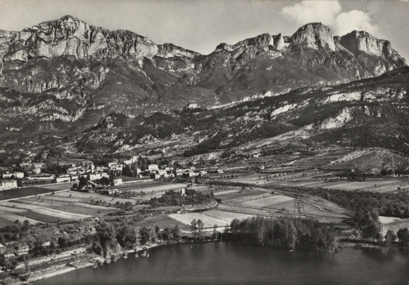 Questa fotografia stereoscopica, marchiata NPG, riporta la dicitura " Gardasee. Vezzano mit Tobliner See", ma in realtà ritrae il paese di Padergnone, con il lago di Toblino ed il Monte Casale innevato.