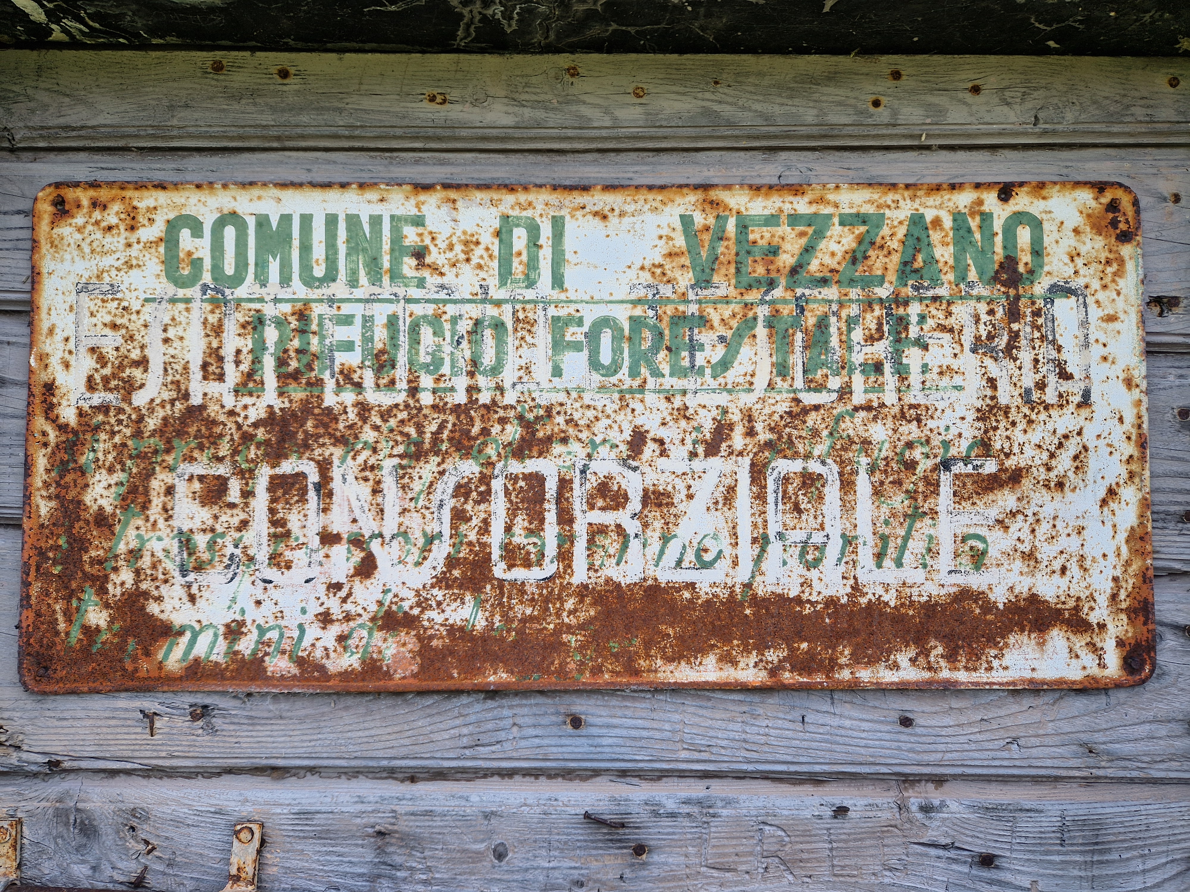 - La vecchia insegna arruginita presente sulla porta della malga di Ciago riporta due scritte sovrapposte di difficile lettura; in bianco con tracce di nero: "Esattoria e tesoreria consorziale", in verde: "Comune di Vezzano - Rifugio forestale - si prega rispettare il rifugio - i trasgressori saranno puniti a termini di legge".