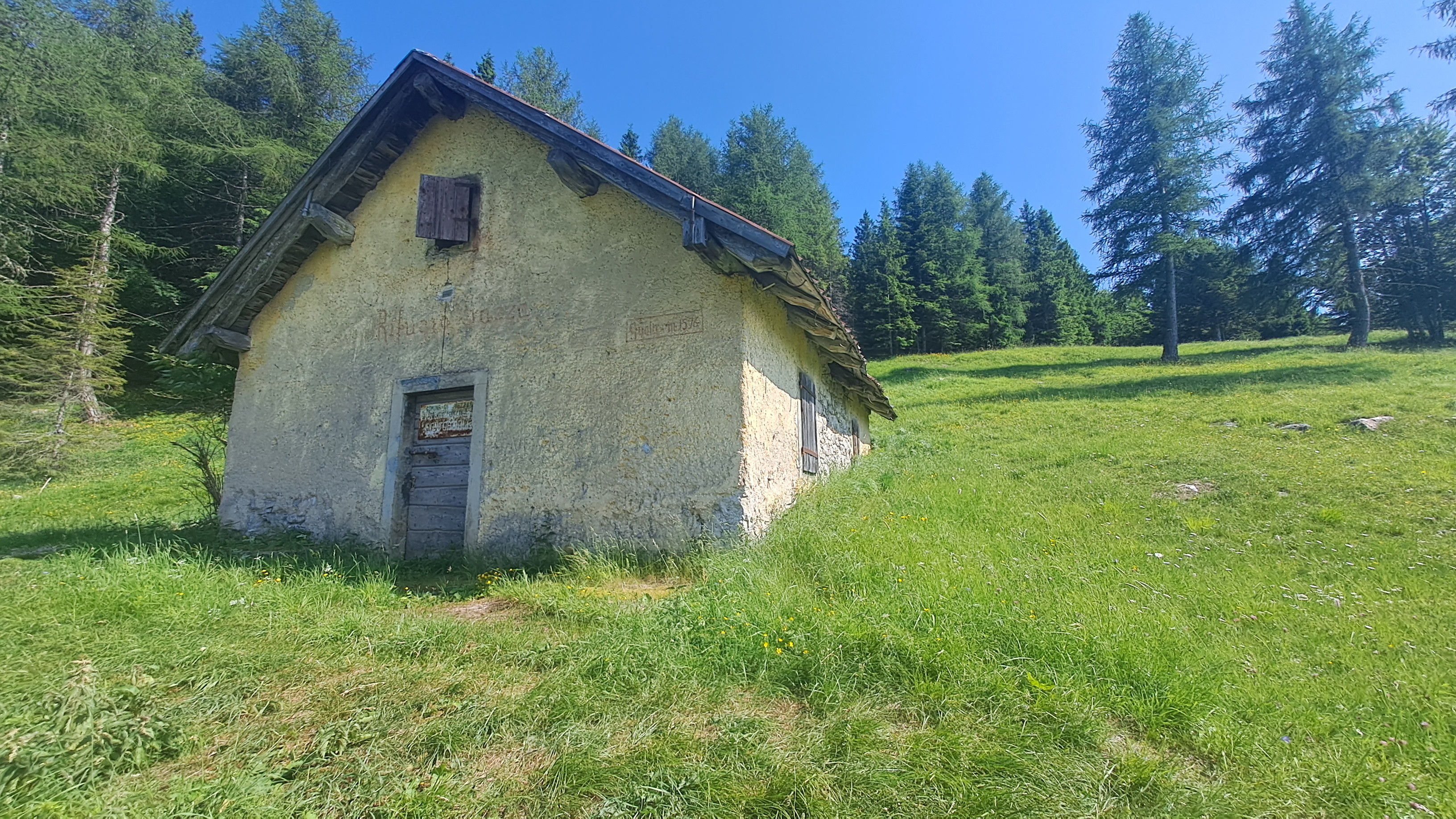 Poco oltre la malga si incontra l’albi "del Casimiro", la vasca in muratura che raccoglie la piccola quantità d’acqua sgorgante dalla roccia soprastante.