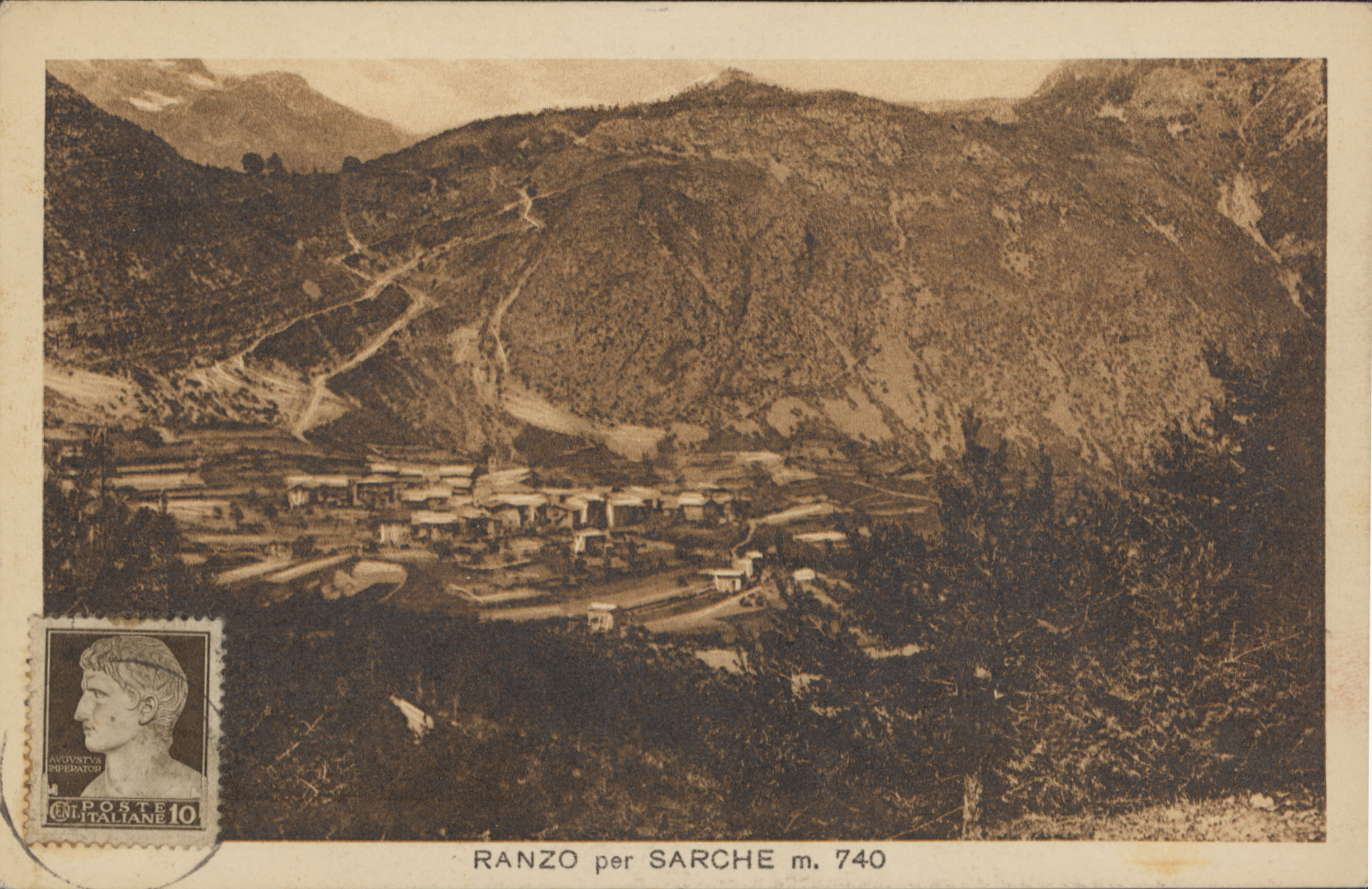 La datazione si ipotizza per l'assenza dell'attuale strada di collegamento al paese (costruita negli anni '50) e per l'evidenza dei sentieri che salgono verso malga Bael e il monte Gazza. Anche la presenza del francobollo italiano da 10 centesimi (posizionato sul fronte, nell'angolo in basso a sinistra) contribuisce ad ipotizzare la datazione.