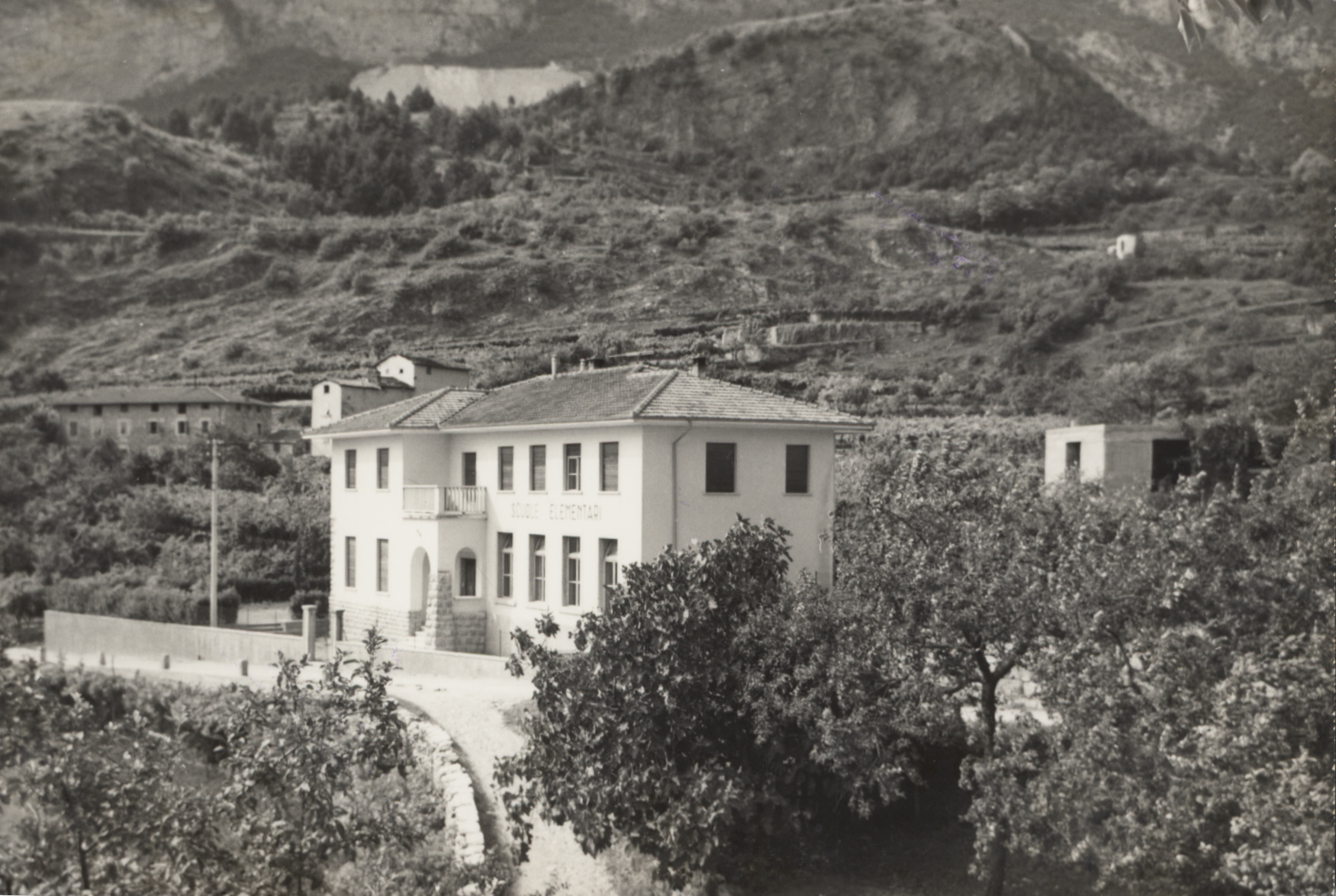 L'edificio scolastico di Fraveggio in ottime condizioni presenta sulla facciata principale la scritta "Scuole elementari".