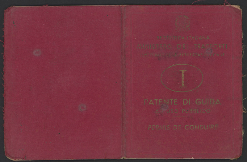 Patente 10x22 , intestata a Raimondo Miori, è stata rinnovata il 28 febbraio 1961 e ha il classico aspetto del libretto rosa usato in quegli anni. All’interno, riporta l’abilitazione alle categorie B, C, D ed E – pubblica, con spazi per i rinnovi su cui sono visibili francobolli (marche da bollo) e timbri ufficiali a conferma della validità nel tempo.