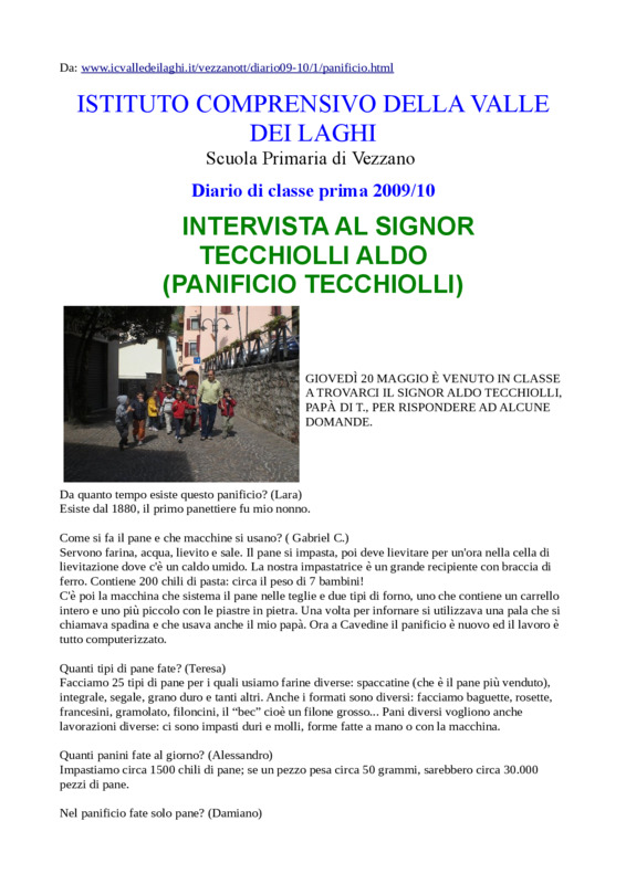 Resoconto della visita al panificio Tecchiolli di Cavedine preparato dalla classe prima di Vezzano nel 2014/15 e pubblicato sul sito istitutocomprensivovalledeilaghi.it poi dismesso.
